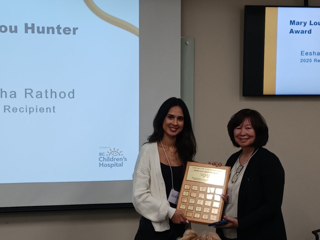 Congratulations to Eesha Rathod, recipient of the 2025 Mary Lou Hunter Award from the Auxiliary to BC Children’s Hospital Education Endowment Fund!
